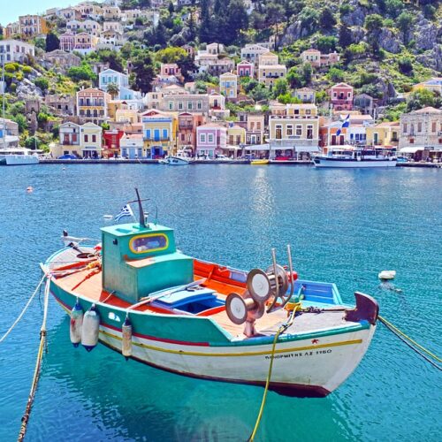 Symi is small Island in the Dodecanese and has a remarkable beauty. The boat trip from the Tourist harbor takes 1 hour approx.. along the Turkish coastline to reach Yialos, Symi’s small, picturesque harbor. Colorful houses in neoclassical design, built in an amphitheater way, many small, paved streets, numerous churches and monasteries, harbor side tavernas set a truly magnificent scene. Walk up to the most ancient village of the island called Chora, where the view is breathtaking.